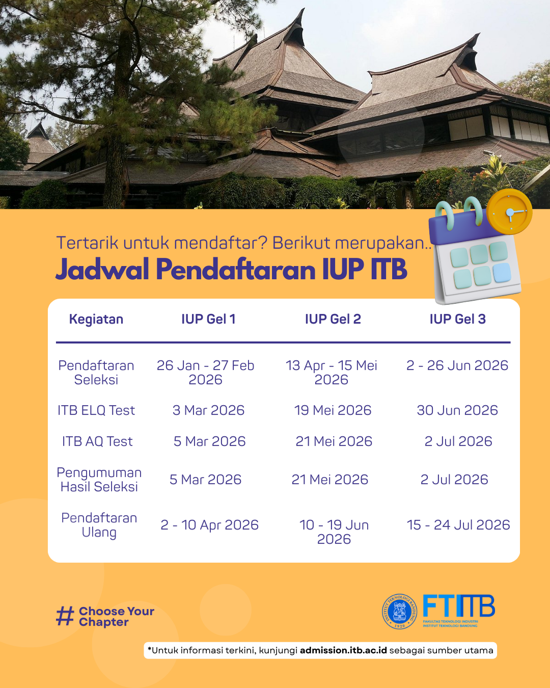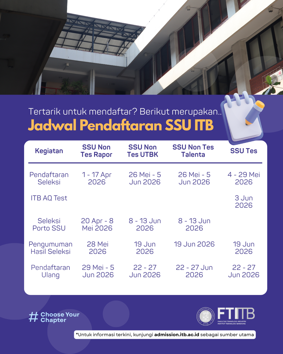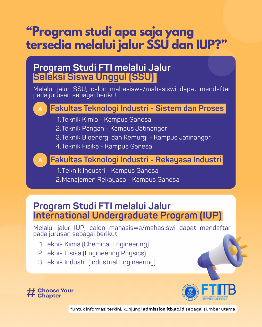 Informasi Pendaftaran Seleksi Siswa Unggul (SSU) dan International Undergraduate Program (IUP) Fakultas Teknologi Industri Institut Teknologi Bandung