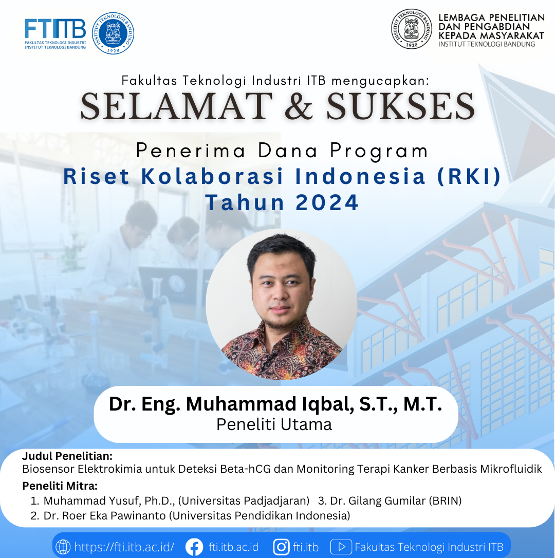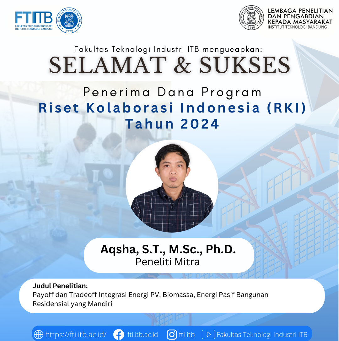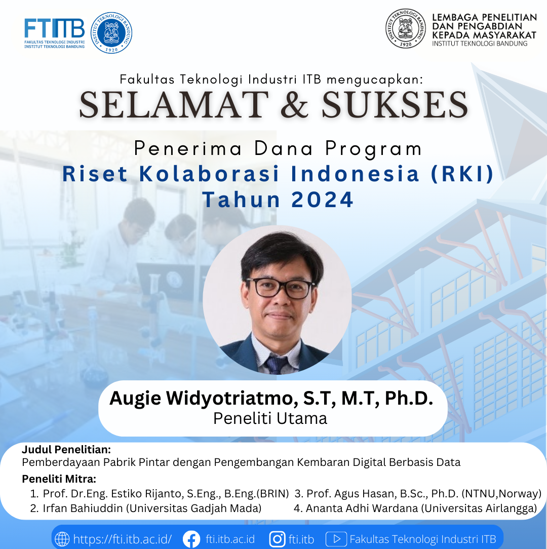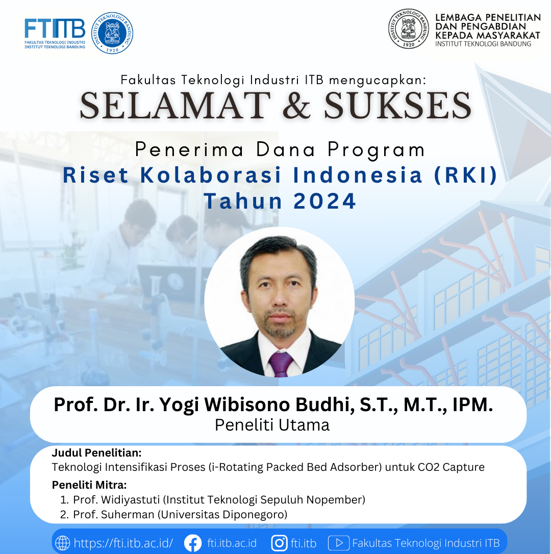 Fakultas Teknologi Industri ITB mengucapkan Selamat dan Sukses kepada Dosen FTI Penerima Dana Program Riset Kolaborasi Indonesia (RKI) Tahun 2024 sebagai berikut: