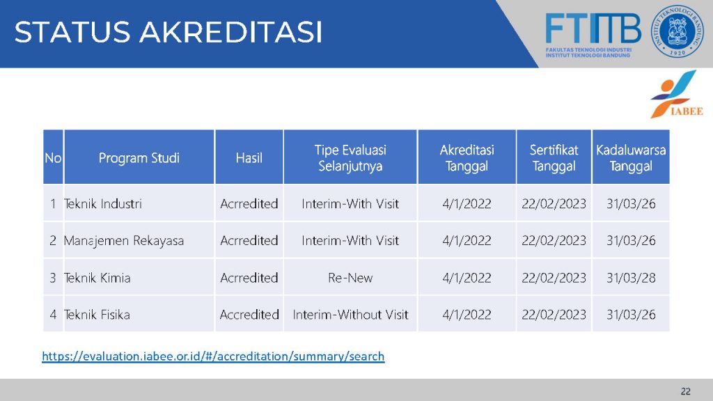 | 1 | Teknik Industri | Accredited | 22 Februari 2022 | 31 Maret 2026 |