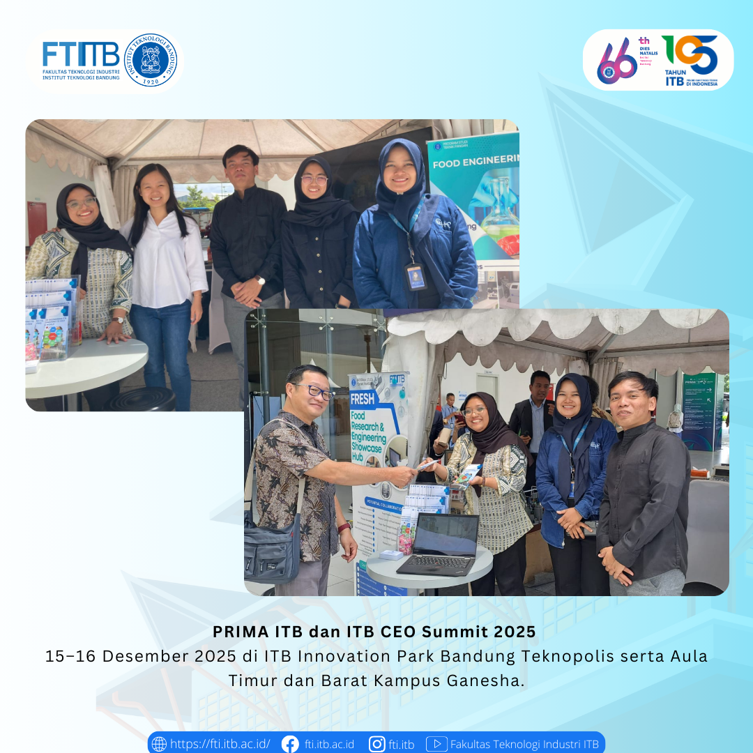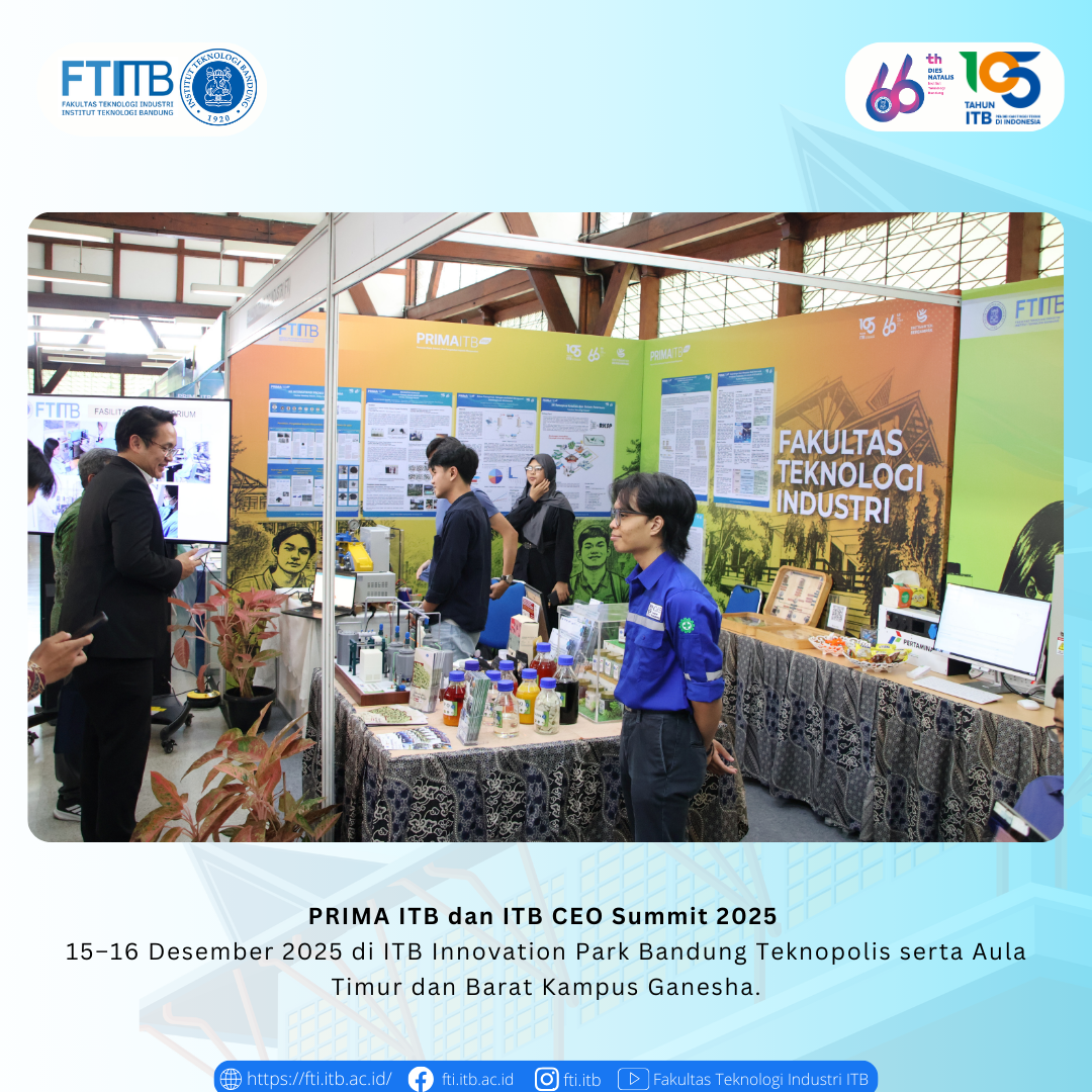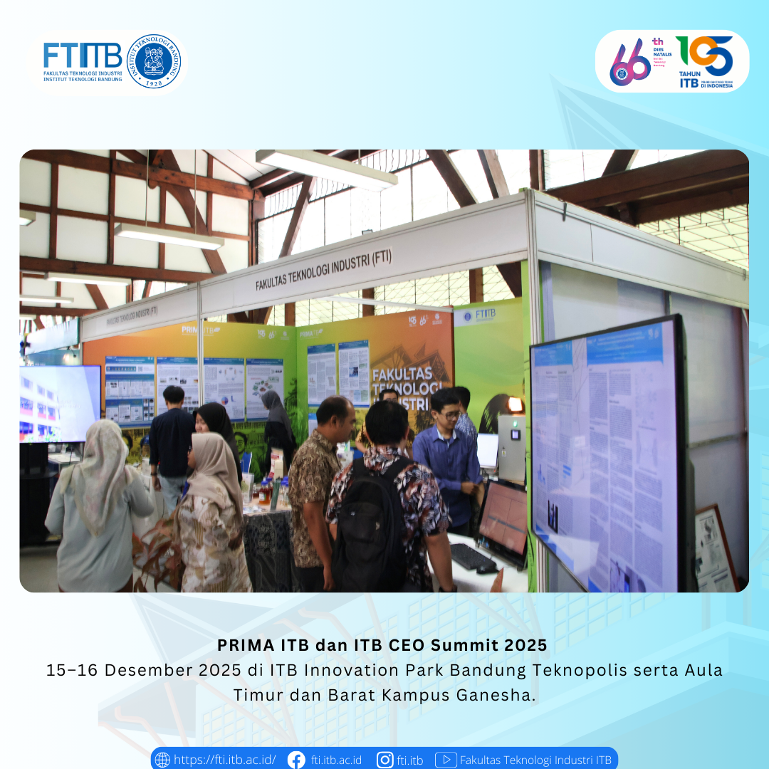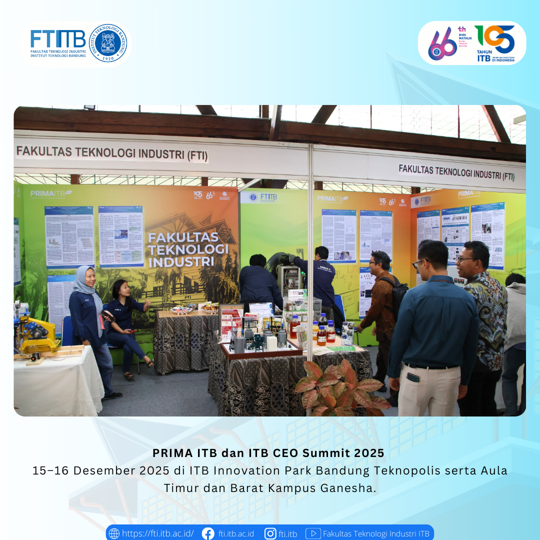 PRIMA ITB dan ITB CEO Summit 2025 Posted: December 19, 2025 By: Admin Category: Akademik / Berita / featured PRIMA ITB dan ITB CEO Summit 2025 pada 15–16 Desember 2025 di ITB Innovation Park Bandung Teknopolis serta Aula Timur dan Barat Kampus Ganesha. Share Previous Post Open House Pendidikan ITB 2026 Next Post Selamat atas sidang pendidikan Program Doktor FTI-ITB