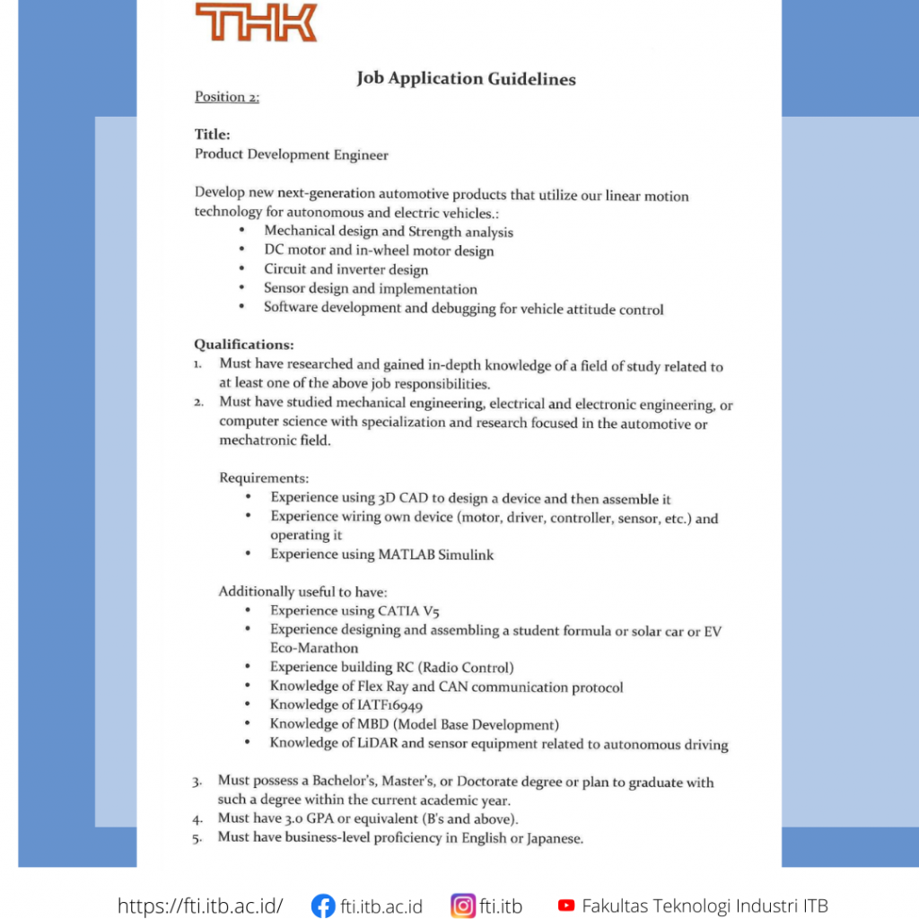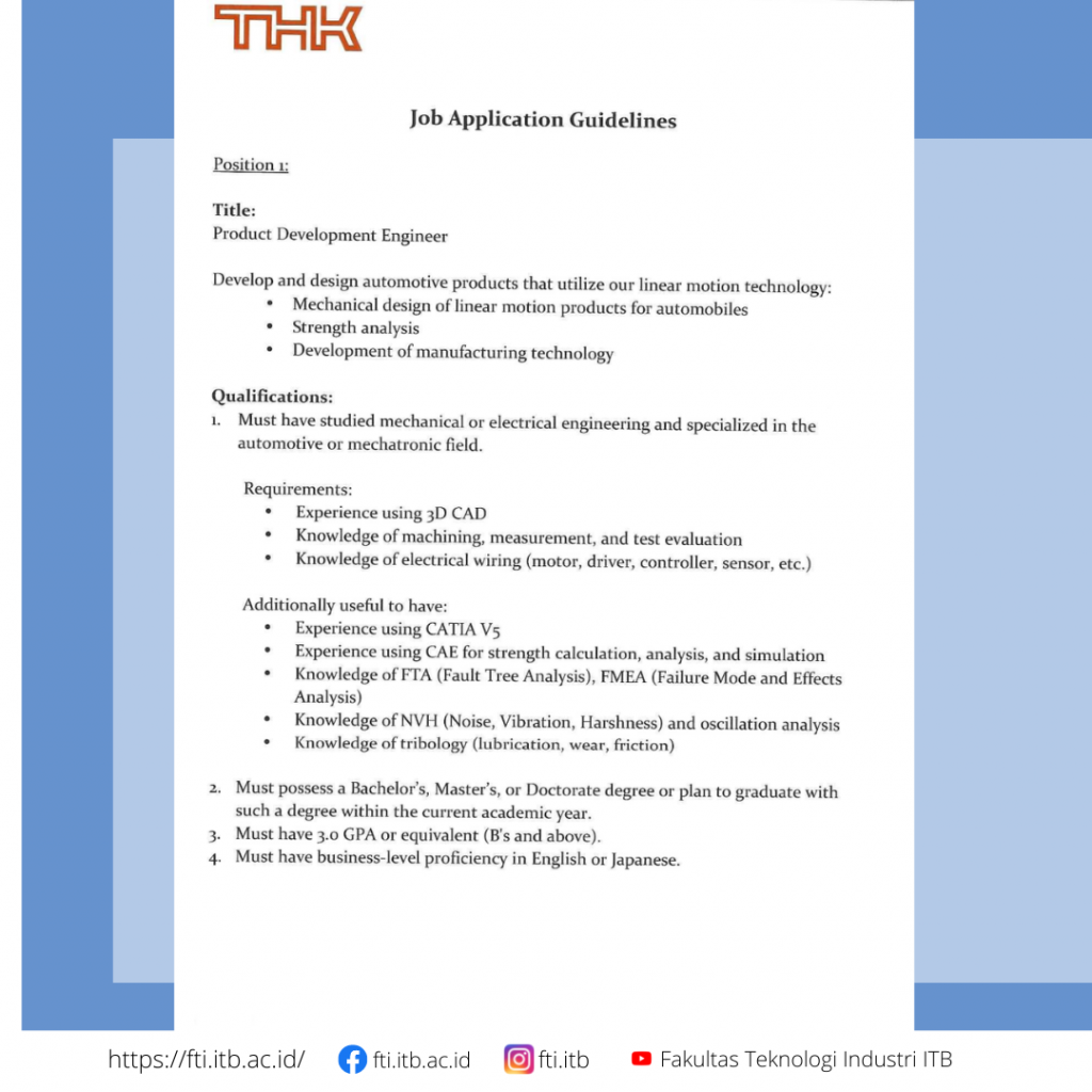 To apply for psition 1 or position 2, please submit the following documents in either English or Japanese to : global-recruiting@thk.co.jp