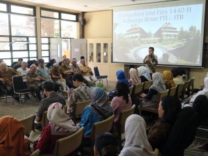 Senin, 17 Juni 2019 bertempat di Ruang Rapat FTI telah diadakan Silaturahmi Idul Fitri 1440 H. Acara ini dihadiri oleh hampir seluruh pegawai yang ada di lingkungan FTI baik dosen, non dosen dan tamu/undangan dari Fakultas lain di ITB. Acara dibuka oleh Prof. Deddy Kurniadi, Dr.Eng,.– Dekan FTI secara singkat kemudian diteruskan dengan do’a bersama yang dipimpin oleh Dr. Suyatman.