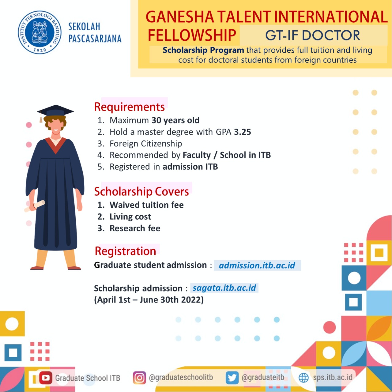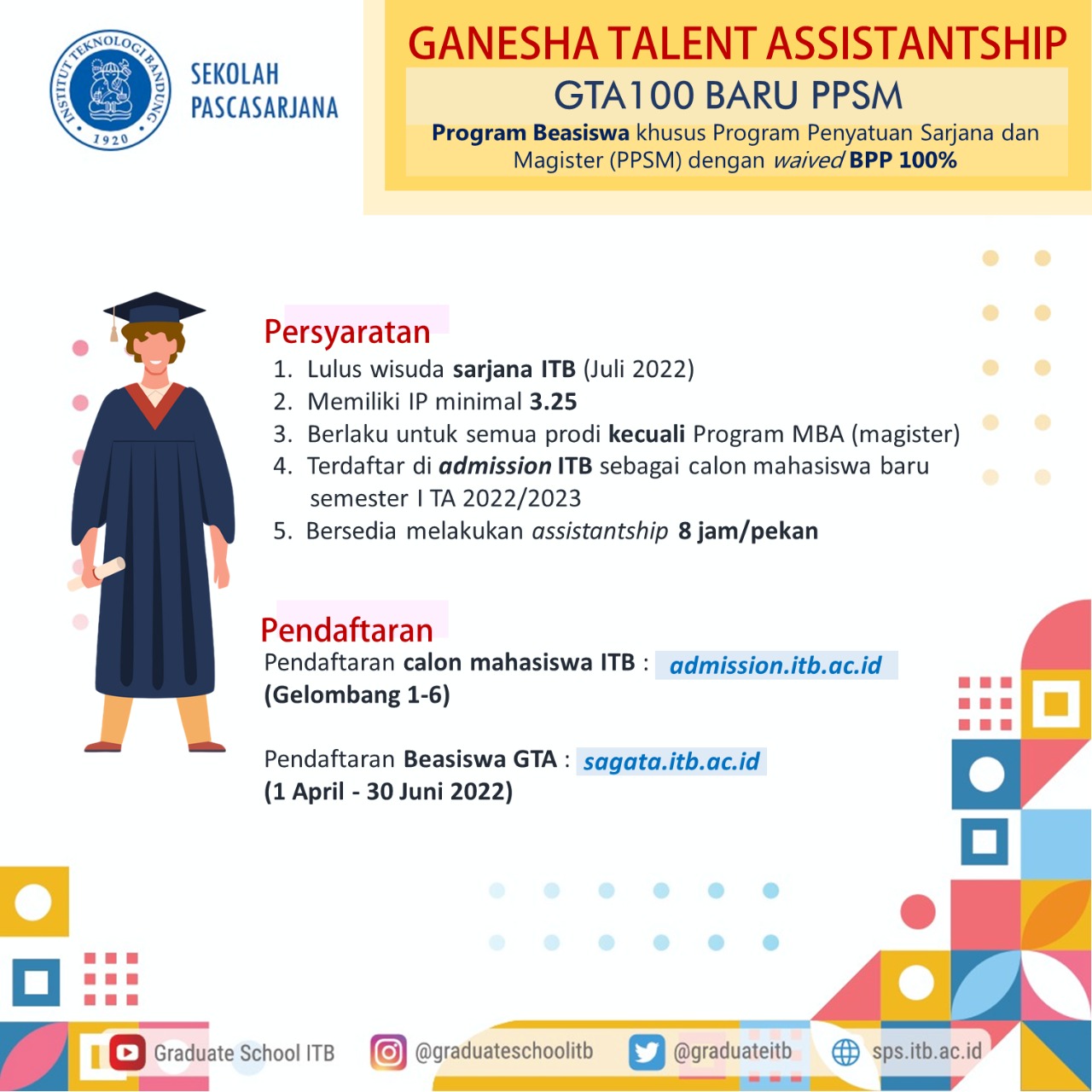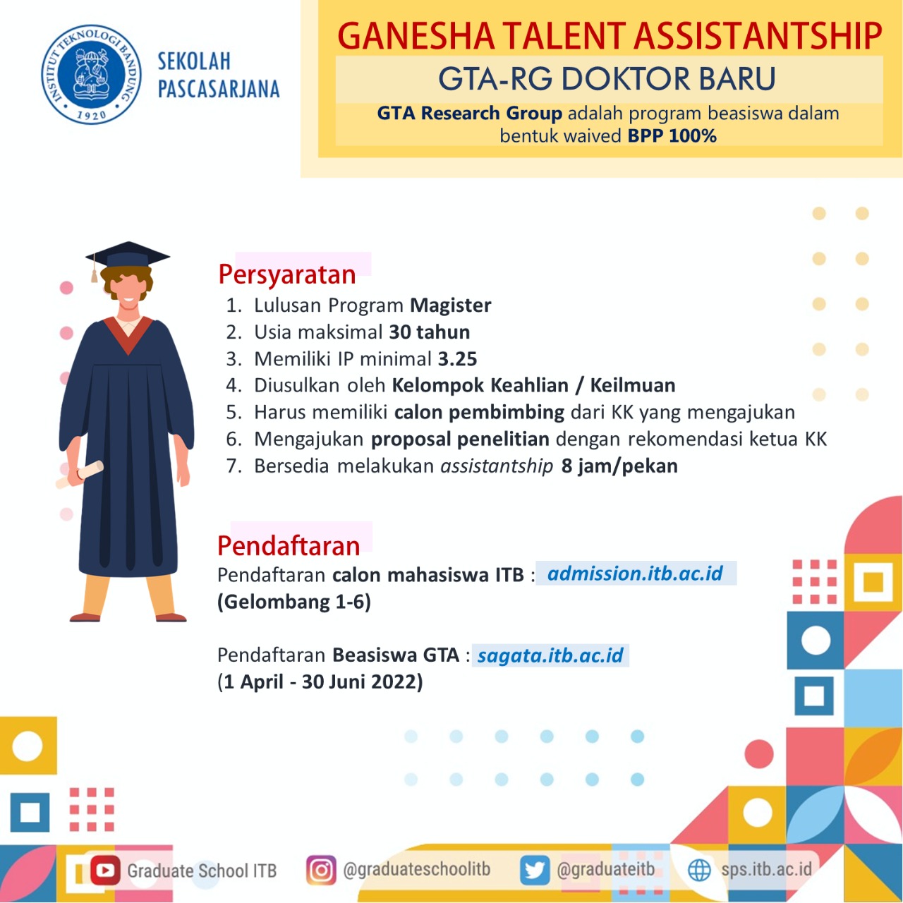 - Ganesha Talent Assistantship (GTA) 2022 (Beasiswa S2 dan S3)
