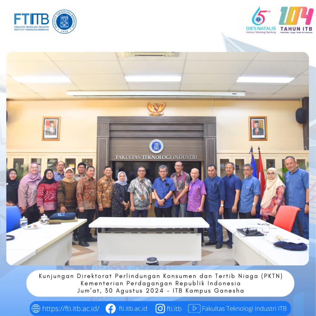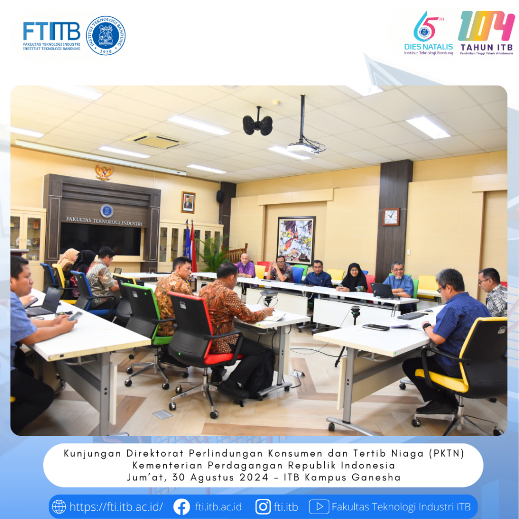 Fakultas Teknologi Industri ITB menerima kunjungan Direktorat Perlindungan Konsumen dan Tertib Niaga (PKTN) Kementerian Perdagangan Republik Indonesia pada 30 Agustus 2024.