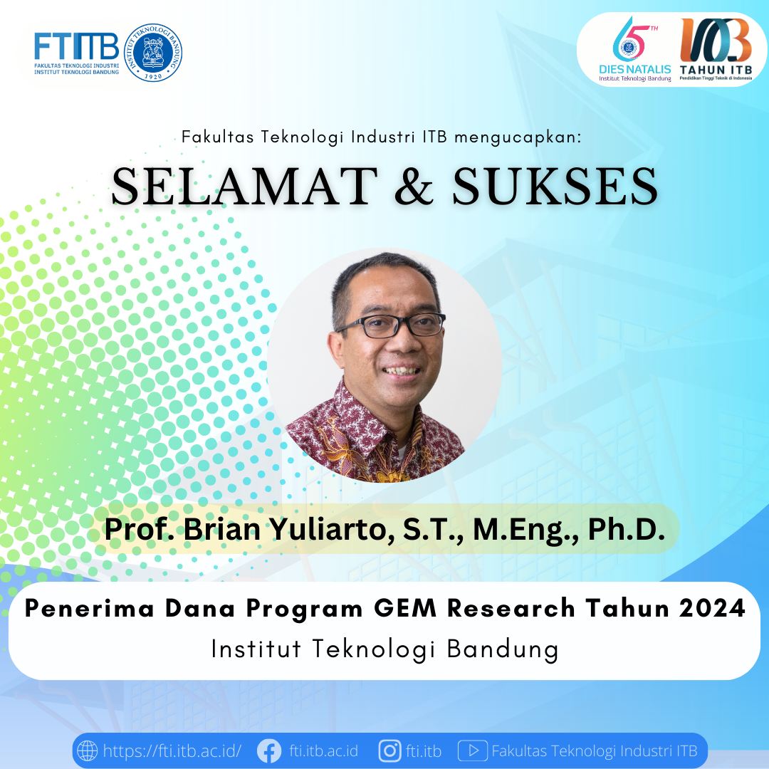 Berikut daftar dosen Penerima Dana Program GEM Research Tahun 2024 dari Fakultas Teknologi Industri ITB: