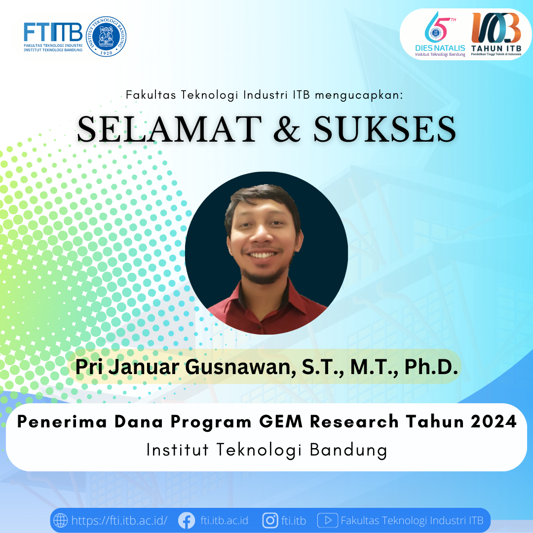 Fakultas Teknologi Industri ITB mengucapkan Selamat dan Sukses kepada Penerima Dana Program GEM Research Tahun 2024.